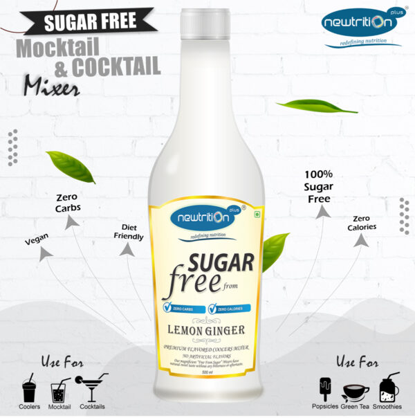 + Free Shipping Mocktail Syrup / MixerNewtrition Plus – Redefining Nutrition brings to you Lemon Ginger Syrup which is absolutely Free from Sugar, Zero Calories, Zero Carbohydrates, Vegan, Gluten Free, Diabetic Friendly & Keto Friendly. It can be used is wide range of recipes such asCoolers, Mocktails, Cocktails, Popsicles, Soda, Fizzy Drinks, Yogurt, Protein Shakes, Smoothies etc. for a balanced diet & Healthy Lifestyle Recipe.